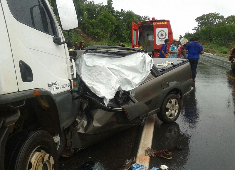 Uma colisão entre um caminhão e um carro de passeio provocou a morte três pessoas na BR-153, na tarde desta quinta-feira (7), próximo a Palmeirante, na região norte do estado. De acordo com as informações do Corpo de Bombeiros, Valdenira da Costa Nolêto, de 64 anos, Cícero Gomes Nolêto, de 63, e José Ferreira de Pinheiro, de 55 anos, morreram ainda no local. Um adolescente, que não teve o nome e a idade divulgados, também estava no veículo e sofreu fraturas internas e externas. Ele foi levado para o Hospital Regional de Araguaína em estado grave.