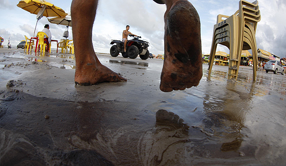 Para a família Oliveira, que reside em Paragominas e estava passando o feriado em Salinas, vai ser ‘a pior lembrança que vão levar para sua cidade natal’. O mecânico Manoel Oliveira contou que ele e seus familiares chegaram na praia por volta das 10h30 de hoje (30), e quando estavam jogando futebol na areia prestaram atenção que seus pés, e a bola também, estavam sujos e não conseguiam limpar de forma alguma.