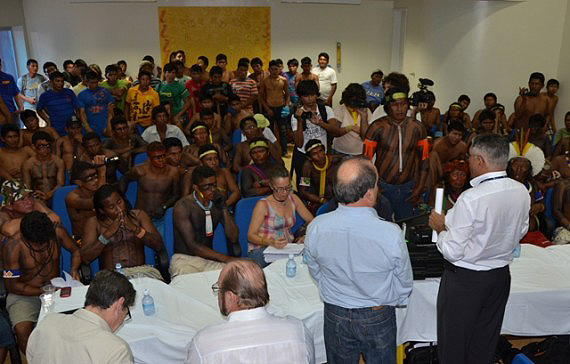 O diretor-presidente da Norte Energia S.A, Carlos Nascimento, esteve reunido no dia 28 de junho, em Altamira, com cerca de 50 lideranças indígenas da região do Xingu das etnias Xikrin, Juruna, Parakanã e Arara do Maia, para negociar a desocupação do canteiro de obras do Sítio Pimental.