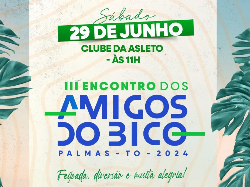 No próximo sábado, dia 29, o Clube da ASLETO, em Palmas, capital do Tocantins, será palco da 3ª edição da festa Encontro dos Amigos do Bico. O evento, que começa às 11h, promete um dia repleto de confraternização, gastronomia e música ao vivo, reunindo cidadãos do Bico do Papagaio para celebrar a cultura e a amizade.