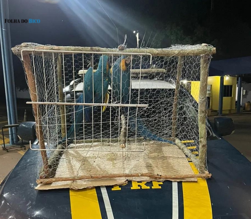 Uma equipe de fiscalização flagrou duas araras sendo transportadas de forma ilegal em um carro que trafegava pela BR-226, em Palmeiras, no Bico do Papagaio. As aves estavam juntas e dentro de uma gaiola.