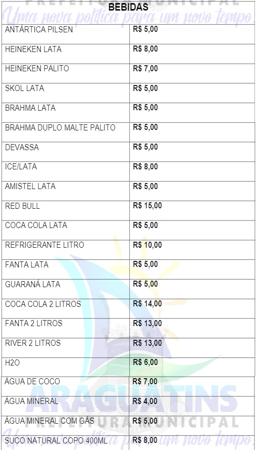 ARAGUATINS: Prefeitura tabela preços de transporte, alimentos e bebidas na Praia da Ponta 2024
