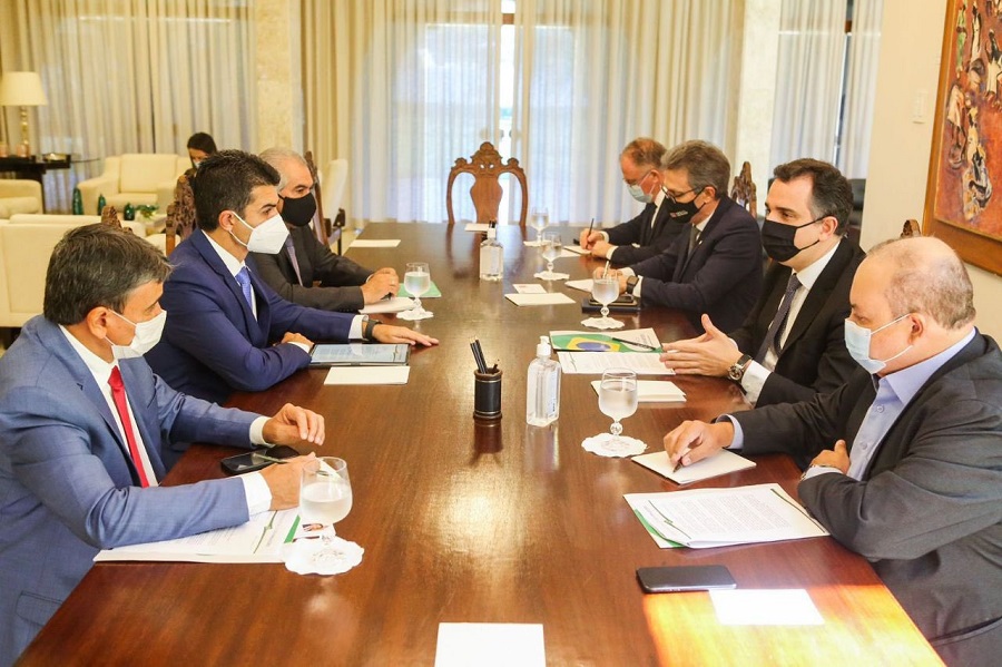 O governador do Pará informou que, durante o encontro, a defesa da democracia e a crise entre os Poderes foram tratados com Rodrigo Pacheco; o governador do Distrito Federal, Ibaneis Rocha, e o governador do Piauí, Wellington Dias.