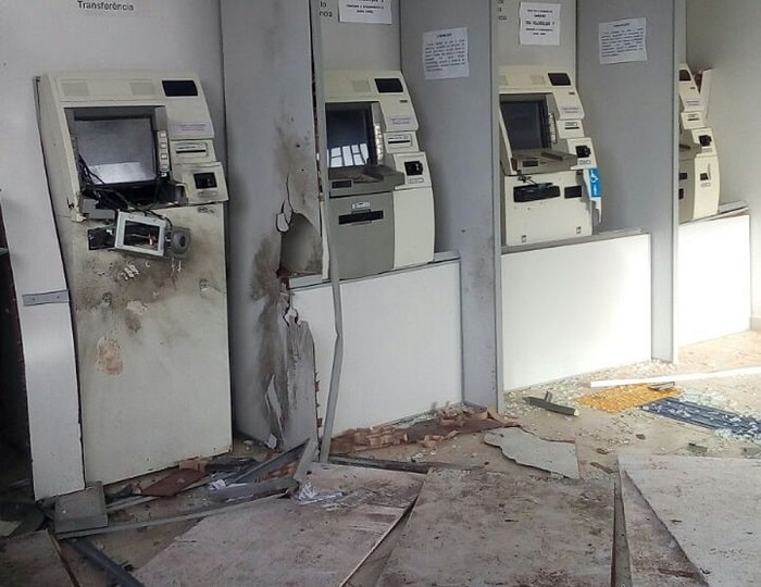 Segundo informações da polícia, os assaltantes já chegaram atirando de dentro de uma caminhonete Triton branca. Eles explodiram caixas eletrônicos e o cofre da instituição.