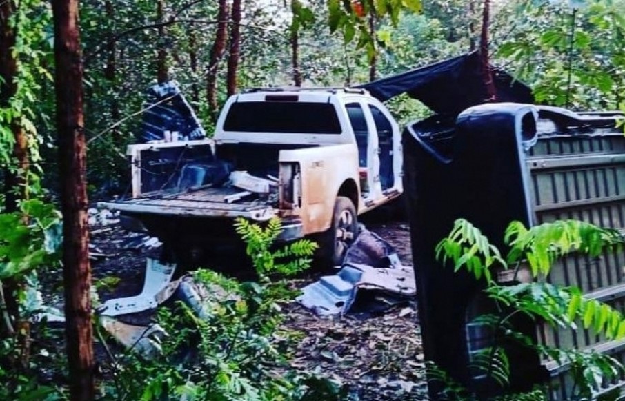 No local, foram encontrados duas caminhonetes com peças desmontadas, além de outras já embaladas. Uma tenda também tinha sido improvisada pelos criminosos, que não retornaram ao local monitorado pela polícia.