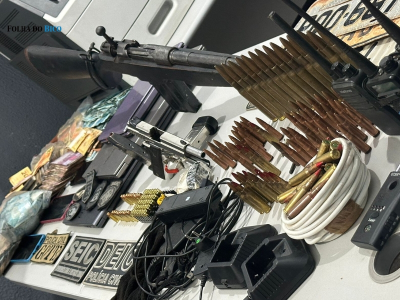 Com o casal foram encontrados e apreendidos: um fuzil calibre .762; munições de .762 e de .50; uma pistola calibre.9mm; explosivos; grande quantidade em dinheiro, provavelmente oriundos de recentes roubos a banco; uma caminhonete utilizada nos assaltos; e equipamentos eletrônicos. O material será periciado para comprovar a origem e instruir as investigações em curso.