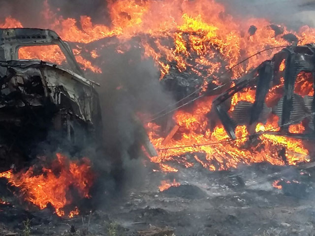 Com o choque um dos caminhões foi incendiado. O motorista do baú sofreu queimaduras em parte do corpo, e morreu.