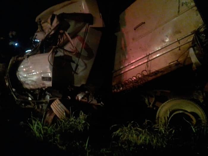 A batida foi a cerca de 10 quilômetros da cidade de Nova Olinda, no norte do estado, pouco depois de 1h desta quarta-feira (6). Um dos veículos era um caminhão bitrem e outro um caminhão do tipo munck. Como a pista ficou cheia de óleo foi preciso usar serragem para evitar novos acidentes no local.