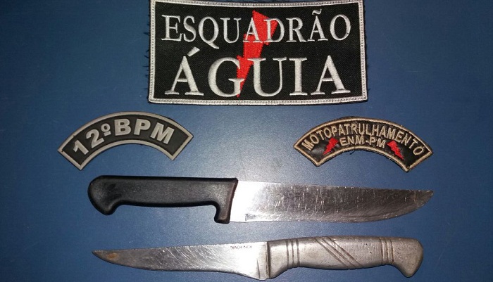 Um adolescente de 17 anos foi apreendido, nesse sábado (21), em Estreito, por estar com duas facas da cintura. A ação da polícia ocorreu nas proximidades da Escola João Castelo.