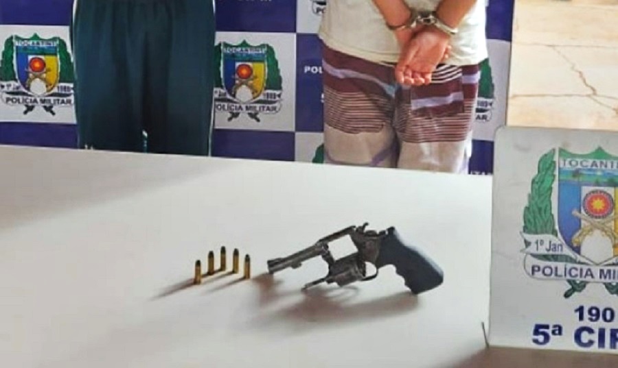 Os militares fizeram uma busca no interior da casa e encontraram uma arma de fogo, tipo revolver, calibre 38 com cinco munições intactas sendo que um menor afirmou ser o dono da arma.