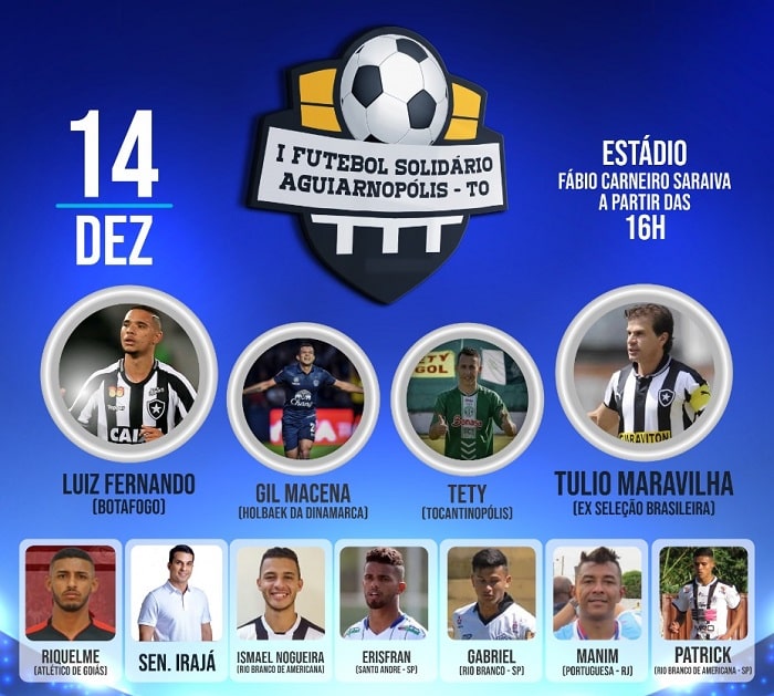 Acontece neste sábado, 14, em Aguiarnópolis, no Bico do Papagaio, o 1ª Futebol Solidário, com a participação de diversos atletas consagrados do esporte nacional, local, autoridades e comunidade.
