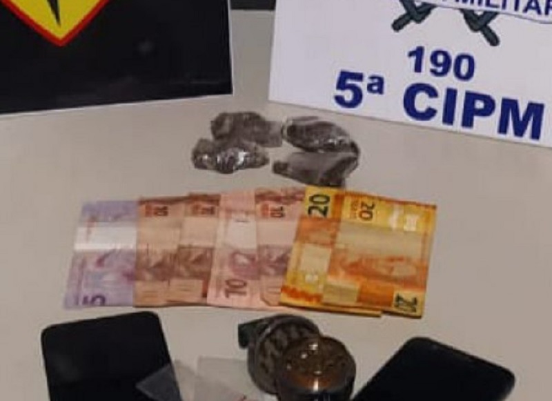 Na abordagem foram encontradas quatro porções de substância análogas à maconha, dois aparelhos celulares marca Samsung, ambos na cor preta e invólucros vazios para comercialização de drogas, (01) um deschavador (é um pequeno aparelho com um sistema interno moedor, utilizado para, entre outros fins, preparar a folhas da maconha para o uso) e a quantia de R$ 85,00 em espécie. O objeto descartado pelos indivíduos era uma sacola contendo as substâncias entorpecentes, que os suspeitos disseram pertencer a um terceiro indivíduo.