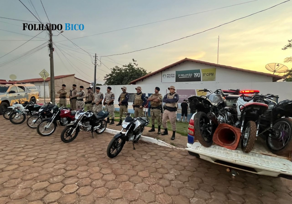 Uma operação realizada no último sábado (8) resultou na apreensão de oito motocicletas com sinais identificadores adulterados e na interdição de um evento irregular em Aguiarnópolis, no norte do Tocantins. A ação foi desencadeada após diversas denúncias de moradores sobre condutores trafegando em alta velocidade, com escapamentos abertos e veículos sem placas no centro da cidade.