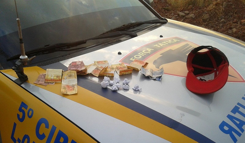 A droga, o dinheiro e os dois celulares foram apresentados e exibidos á autoridade policial na mesma delegacia. O veículo foi conduzido à sede da 5ª CIPM em Tocantinópolis por está em desacordo com o CTB. (ASCOM 5ª CIPM)