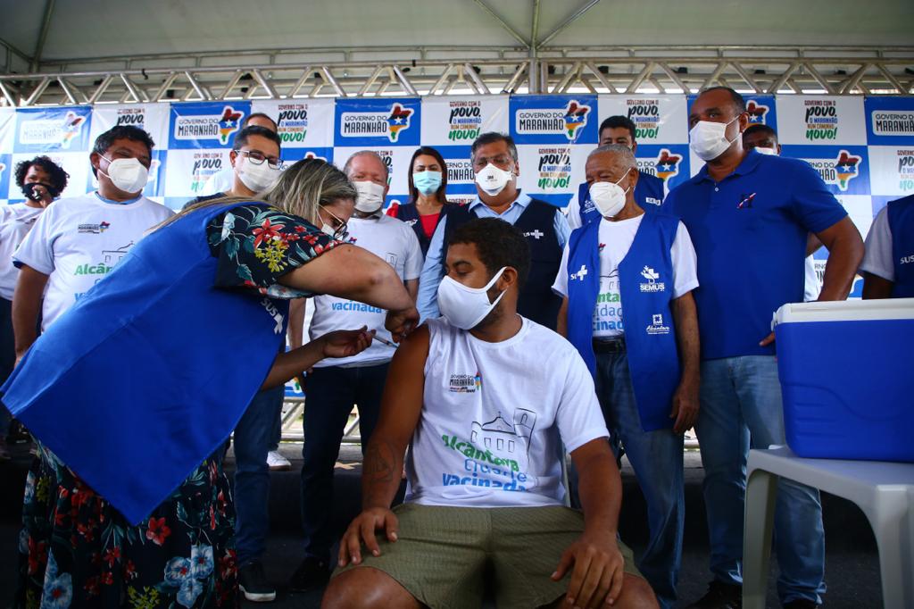 Alcântara é a primeira cidade do país a atingir a totalidade da vacinação de sua população adulta contra a Covid-19. Para comemorar o alcance, evento foi realizado no município, nesta quarta-feira (16), na Praça da Matriz. Na ocasião, o governador Flávio Dino parabenizou os esforços dos profissionais da saúde e da população. O Maranhão já se destacava entre os estados com melhor desempenho no combate à Covid-19, e agora, Alcântara possui o melhor índice de vacinação do país. Foram cerca de 15 mil pessoas imunizadas com a primeira dose no município.