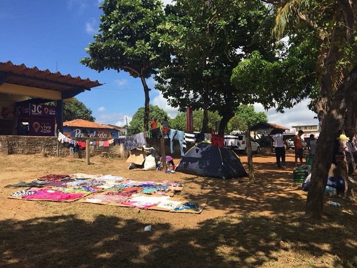 Refugiados da Venezuela acampam em frente ao Terminal Rodoviário em Altamira, nesta terça-feira, 11. A situação é complexa e exige uma ação conjunta entre os poderes, e pode se agravar já que outros refugiados estariam chegando à cidade nos próximos dias.