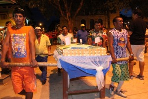 Ao som de bandas musicais e dos fogos de artifício, eles anunciavam a passagem dos grupos de moradores e representantes das entidades e associações que conduziam os bolos em caminhada pelas ruas de Alter do Chão. Da frente de suas casas, muitos acompanhavam a tradição.