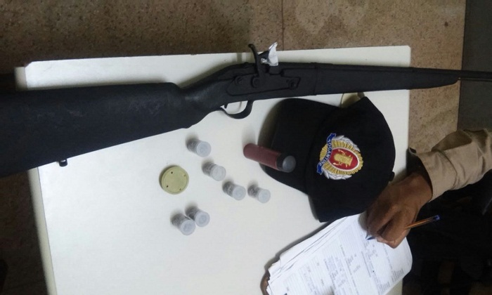 Após receber ligação via 190, para atender uma ocorrência de violência contra a mulher, no povoado Batente, zona rural, a guarnição da Polícia Militar de Ananás se deslocou ao endereço e chegando no local, encontraram a vítima que minutos atrás teria sido agredida por seu companheiro, Eloísio Filho Nunes dos Santos, de 24 anos. Após conversas com a vítima, a mesma informou que além das agressões sofrida por Eloísio, o mesmo teria efetuado disparos para o alto, com uma arma de fogo de fabricação caseira (por fora), no sentindo de intimidá-la. Ao ser abordado pela guarnição, o autor não esboçou reação, sendo que além da referida arma de fogo, outros objetos como pólvora, chumbo e espoletas também foram encontrados com ele.