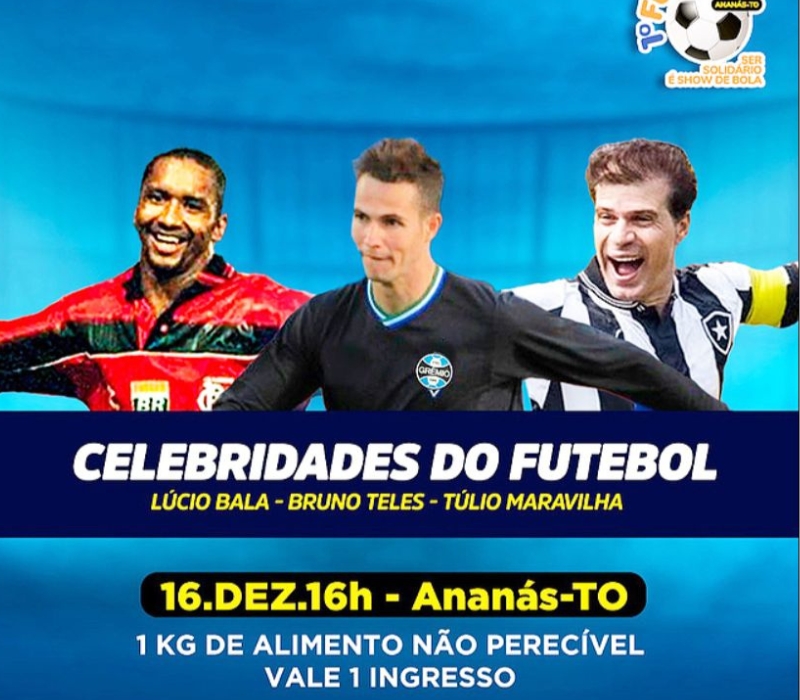 Uma partida de futebol diferente promete unir diversão e solidariedade em Ananás, no 1º FUTSOL – “Ser solidário é um Show de Bola”, que acontece dia 16 de dezembro. A ação tem o objetivo de arrecadar alimentos não perecíveis para serem doados as famílias carentes do município e surgiu a partir de uma parceria entre os embaixadores Letícia Cardoso e Hélio G2.