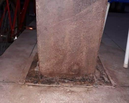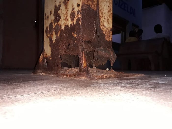 Imagens enviadas pelos comerciantes e moradores, mostram o estado precário e caótico das colunas de ferro.