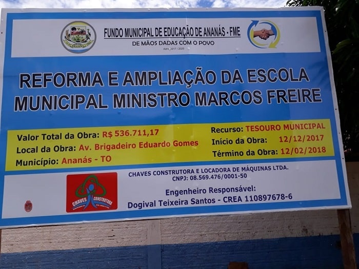 Foi aberto Inquérito Civil para investigar denúncia de possíveis irregularidades na obra de reforma e ampliação da Escola Municipal Ministro Marcos Freire, na cidade de Ananás. A obra tive início em dezembro de 2017.