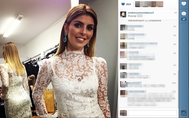 As publicações no Instagram são de sexta-feira (7), dia dos desfiles. Uma amiga a perguntou de onde era o vestido que usava e Andressa respondeu: “DG”. Outras mulheres elogiaram o brinco de pedras verdes, que parecem ser esmeraldas. Mas a maior parte dos comentários foi postada na terça-feira, parabenizando-a pelo artigo do marido.
