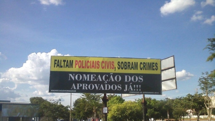 A Comissão de Aprovados no concurso da Polícia Civil fixou no perímetro urbano de Palmas outdoors pedindo que o governador Marcelo Miranda convoque o restante dos aprovados no concurso. Segundo a comissão, a campanha está sendo realizada porque o Estado anunciou a nomeação dos aprovados, mas contemplou apenas 248 candidatos, ou seja, cerca de 50% dos profissionais aptos a integrar o quadro da Segurança Pública.