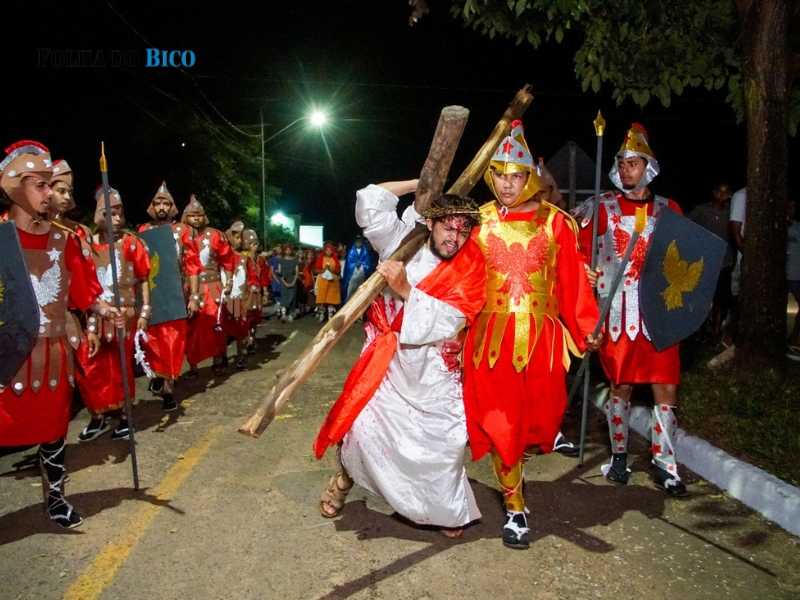 A encenação contou com a participação de 50 integrantes, entre atores e equipe de apoio, que retrataram momentos importantes da vida de Jesus Cristo, como o batismo, a entrada triunfal em Jerusalém, a tentação no deserto, Santa Ceia, o caminho da Via Crucis, com a crucificação no Calvário, finalizando com sua morte e ressurreição.