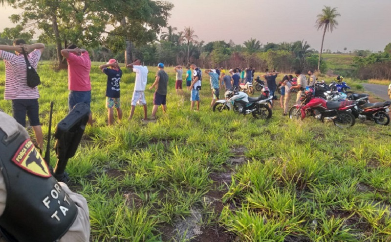 Após denúncia via SIOP – Sistema Integrado de Operações, a Equipe de Força Tática se deslocou ao endereço mencionado, onde, deparou-se com uma exibição clandestina envolvendo manobras perigosas sobre motocicleta, que reunia cerca de 50 pessoas e 40 veículos.