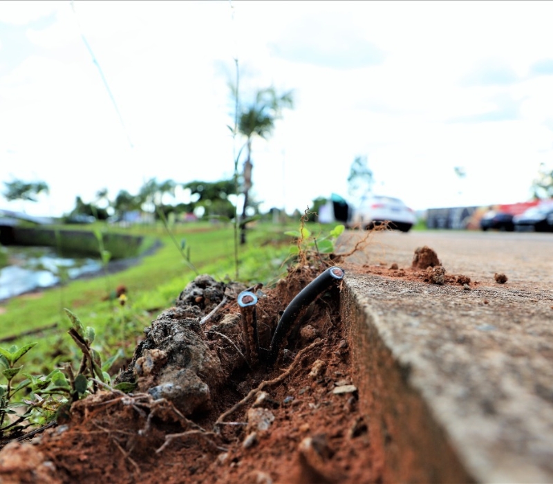 Recentemente, a iluminação pública em trechos de importantes avenidas de Araguaína vem sendo interrompida por furto de fios de energia nos canteiros. Em 2022, a Prefeitura registrou 566 metros de cabos retirados. Para evitar novos furtos que causam prejuízo ao patrimônio público e escuridão, toda fiação foi aprofundada e concretada ao chão.