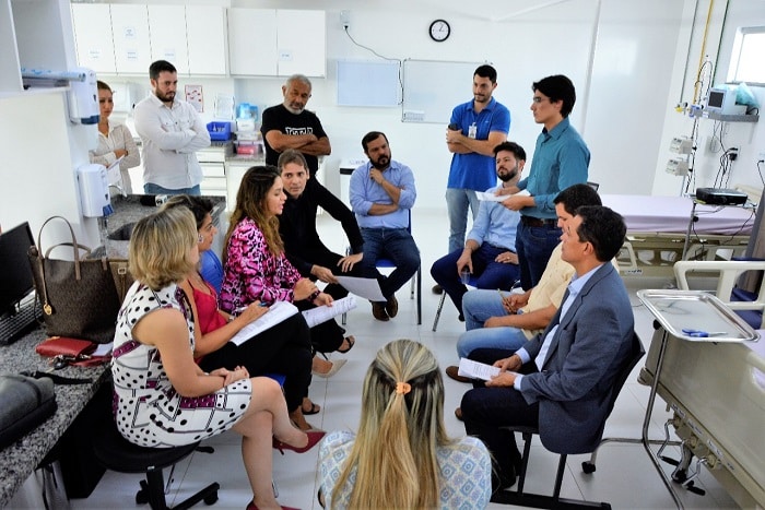 Durante a reunião, foram revisados itens de equipamentos indispensáveis para o funcionando da unidade. O Isac, responsável pela gestão da unidade, apresentou a lista com nomes da equipe de profissionais que atuarão na UTI.