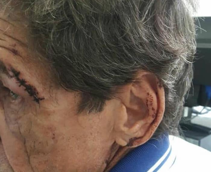 O idoso foi ferido no rosto e precisou levar vários pontos na sobrancelha esquerda. (G1)