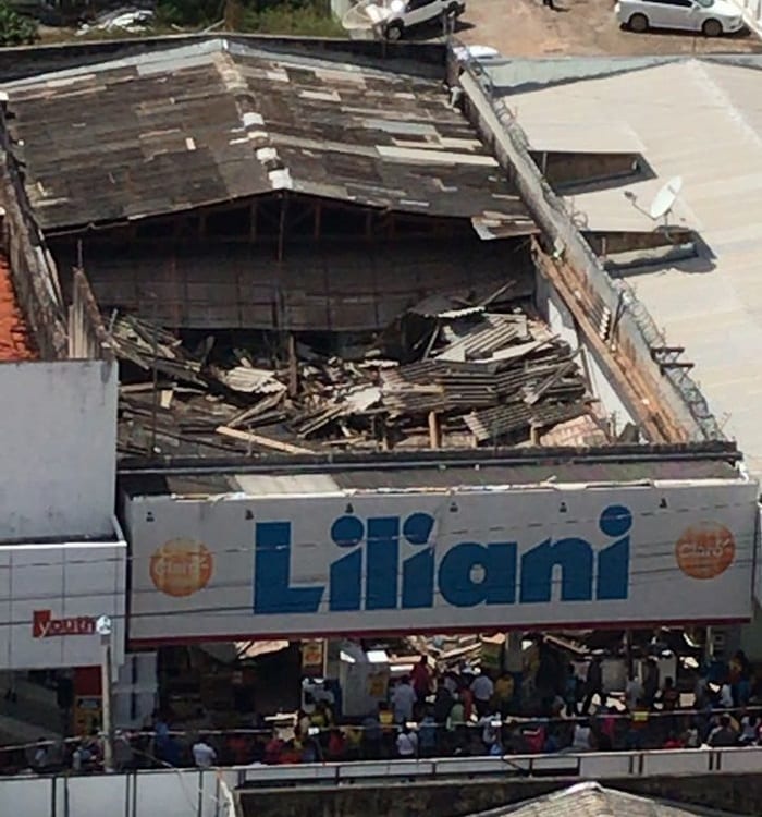 O teto da loja Liliani que fica no centro de Araguaína, norte do Tocantins, desabou no início da tarde desta quinta-feira (24). A informação preliminar é de que no momento do desabamento havia clientes e funcionários no lugar.