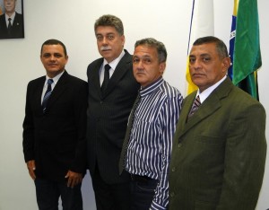 Na visita de agradecimento ao senador Joao Ribeiro, acompanharam o prefeito Dino os vereadores Amilton Silva Leite e Cícero da Silva, presidente da Câmara. (Assessoria de comunicação do senador)