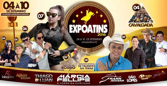 A atração nacional Márcia Fellipe e a abertura do rodeio acontecem na quarta-feira, dia 7. Na quinta, dia 8, será a abertura do 2ª Festival de Talentos da Terra. Outra atração nacional, o cantor Frank Aguiar, se apresenta no dia 9. O fechamento do evento será com Dão Lopes e Muleke Doido.