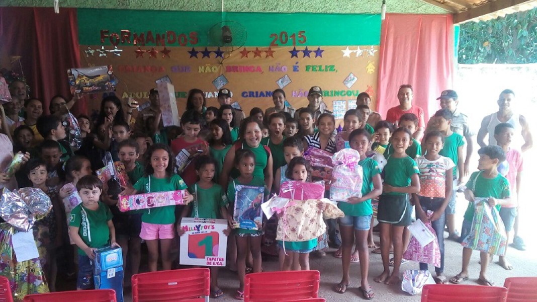 O Comando da 4ª Companhia Independente da Polícia Militar (CIPM), por meio de seu gestor, major PM Valdeonne Dias da Silva realizou na manhã desta segunda-feira, 14, a distribuição de sessenta presentes às crianças da Escola Municipal Professor Edgar Tolentino localizada no povoado de Transaraguaia, município de Araguatins.