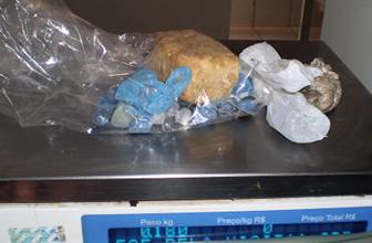 Após uma busca no local, a PM encontrou com os detidos 01 (uma) trouxa de maconha. Após entrarem numa residência onde os mesmos usavam para a distribuição dos entorpecentes, os militares encontraram 01 pedra de crack pesando cerca de