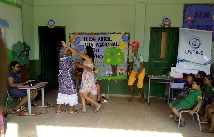 Os acadêmicos dos cursos de Letras e Pedagogia, ambos do 4º período, do Campus Araguatins da Fundação Universidade do Tocantins (Unitins), fizeram uma ação com os estudantes da Escola Municipal Vanor da Costa Parreão em comemoração ao Dia Nacional do Livro Infantil, sob a orientação das professoras especialistas Maria da Paz Coelho de Sousa (Pedagogia) e Rosana Quadros Santos Leite (Letras).