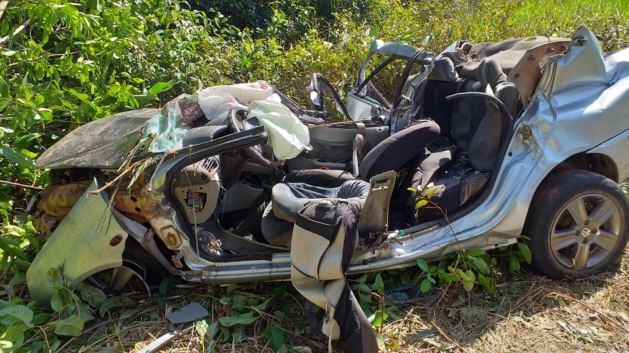Corpo de Bombeiros, Polícia Técnica e Instituto Medico Legal chegaram no local logo cedo, assim que populares avistaram o veículo em meio a vegetação e comunicação as autoridades.