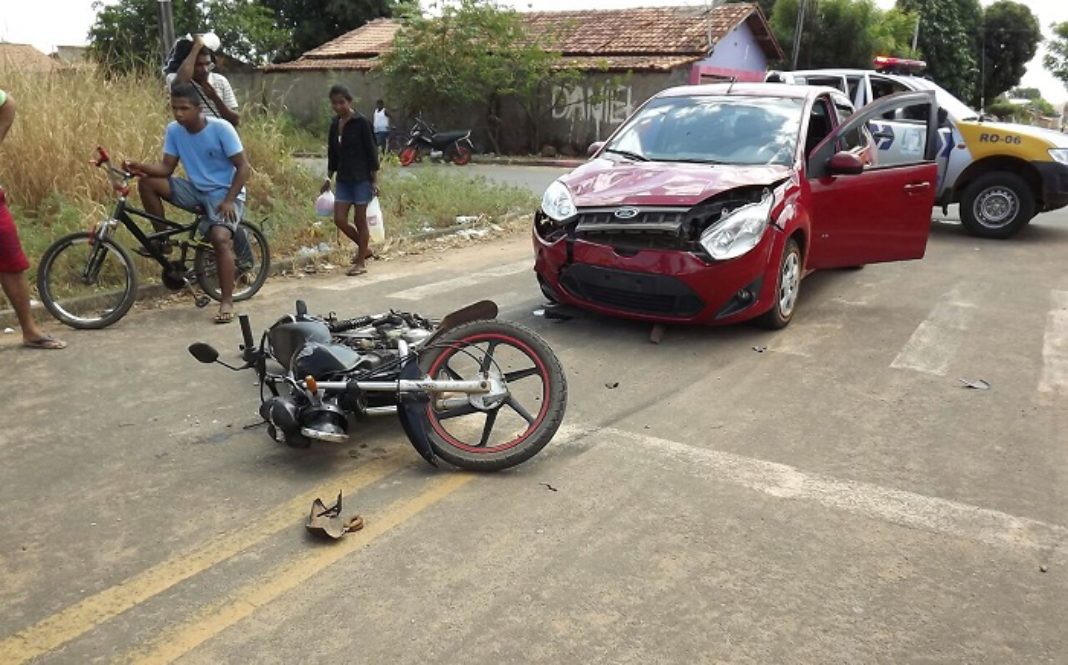 Um motociclista ficou ferido em uma batida com um carro na manhã desta quinta-feira, 21, no bairro Nova Araguatins, em Araguatins. O fato aconteceu no cruzamento das ruas Antônio Fernandes de Oliveira e Santa Maria.