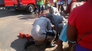 Populares acionaram a equipe de resgate do Corpo de Bombeiros, que rapidamente chegou ao local e encaminhou o piloto da motocicleta, Denis Rafael para o Hospital de Araguatins, com uma fratura na perna. O motorista do Classic não se feriu.