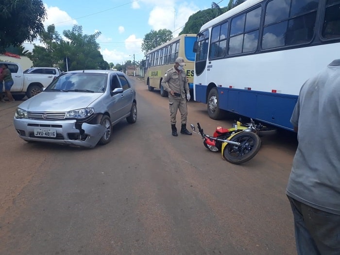 Um acidente na tarde desta sexta-feira, 5, entre um carro e uma moto deixou o trânsito bloqueado por quase 1h, em parte da rua Antônio Fernandes de Oliveira, próximo ao cruzamento com a Avenida Araguaia, no centro da cidade de Araguatins, no Bico do Papagaio.