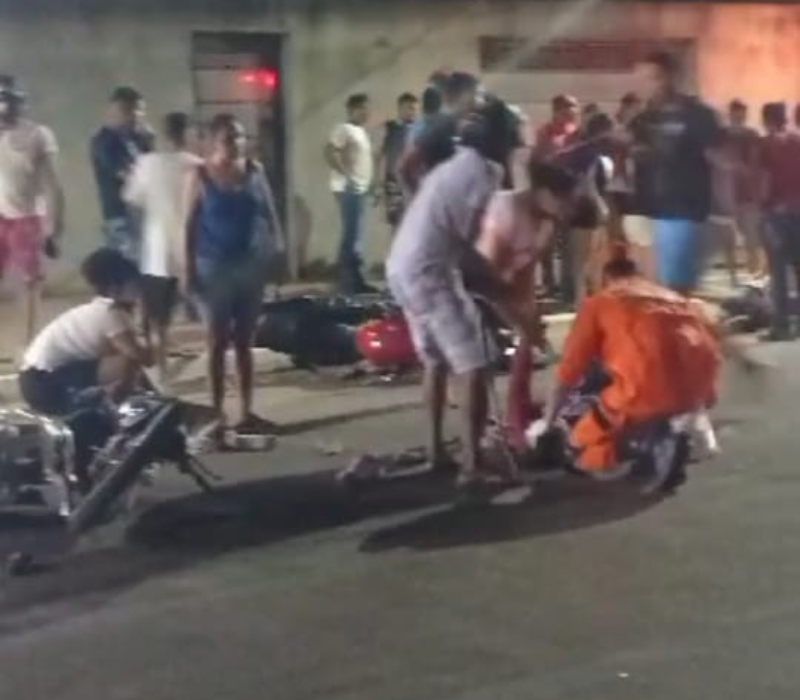 Na noite desta quinta-feira, 6, duas motos se chocaram em uma das principais ruas do centro da cidade de Araguatins, no Bico do Papagaio.