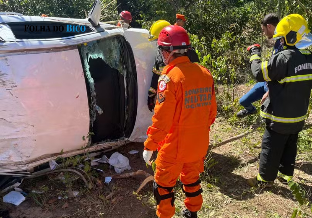 Um grave acidente registrado na manhã desta segunda-feira (14), por volta das 10h, na rodovia TO-010, no município de Araguatins, resultou na morte de três pessoas e deixou outras cinco feridas. O veículo Hyundai HB20 transportava oito ocupantes no momento em que perdeu o controle em uma curva, capotou diversas vezes e colidiu violentamente contra uma árvore. A cena mobilizou equipes do Corpo de Bombeiros, da Polícia Militar e da Secretaria Municipal de Saúde.