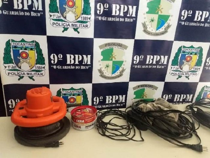 Dentro do saco de fibra os policiais encontraram uma máquina de polimento, cera, fios, dentre outros objetos. O menor disse a PM que os objetos haviam sido furtados da aeronave. O adolescente e os objetos foram apresentados na Delegacia de Polícia para as providências.