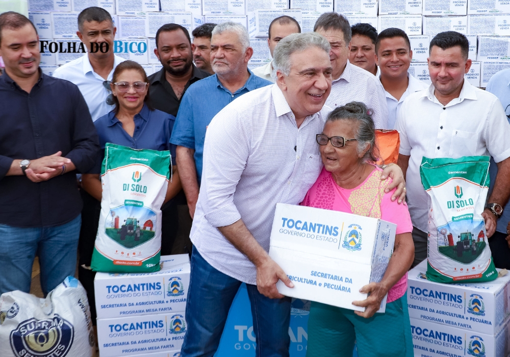 O governador do Tocantins, Laurez Moreira, esteve em Araguatins, na região do Bico do Papagaio, nesta sexta-feira (10), para realizar a entrega de 800 kits de sementes a agricultores familiares do município. A ação integra o programa Mesa Farta, desenvolvido pelo Governo do Estado por meio da Secretaria da Agricultura e Pecuária (Seagro) e do Instituto de Desenvolvimento Rural do Tocantins (Ruraltins).