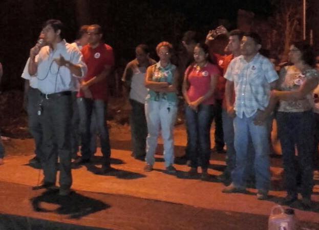 O candidato a prefeito, Alday Machado (PMN), em seu discurso, enfatizou temas como combate a corrupção e geração de emprego. O candidato lembrou também da creche inacabada e abandonada no bairro, que poderia estar atendendo mais de 200 crianças e gerando certa de 30 empregos diretos.