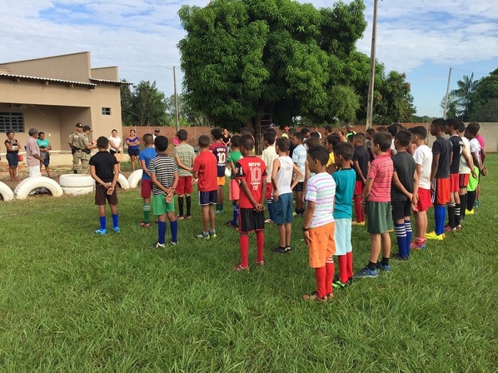 Os alunos da “Escolinha Guardiões – Formando Cidadãos” participaram na manhã desta quinta-feira, 07, do 2º dia de aula no campo Society “Arena Guardião” do 9º BPM.