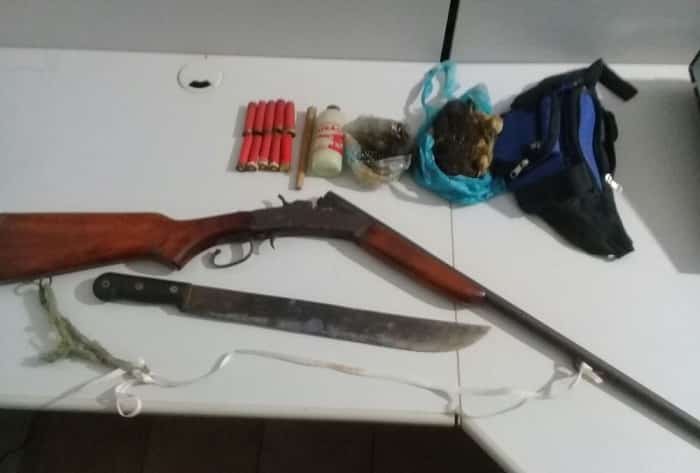 Na madrugada deste domingo, 13, a equipe policial militar foi acionada com a informação da localização de um suspeito de 29 anos com uma arma de fogo em mãos no Povoado Castanheira. No local, a equipe em serviço deparou com o referido indivíduo portando uma espingarda cartucheira calibre 28, contendo um cartucho intacto, 5 cartuchos de calibre 32 recarregados artesanalmente, um facão e uma bolsa contendo um frasco com pólvora e buchas para recarregar manualmente.