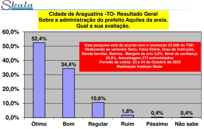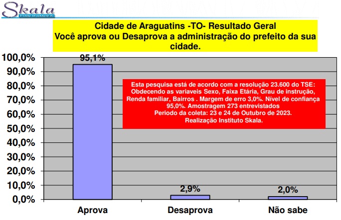 O Instituto Skala realizou uma nova rodada de pesquisa no município de Araguatins, maior da região do Bico do Papagaio, e sondou questões administrativas nas três esferas, bem como eleitorais.